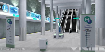 Fotorealisztikus belső kép: 4-es metró Keleti pályaudvari állomásának átnézeti robbantott ábrája